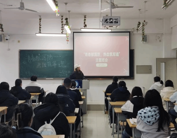 为积极响应国家征兵号召,大力弘扬爱国主义精神,扎实推进大学生征兵工作,有效激发学生参军报国的青春热情,电子商务系于2025年11月17日至11月21日期间,组织各班级集中开展“青春献国防,热血筑军魂”主题班会,让国防教育深入人心,让参军信念扎根校园。