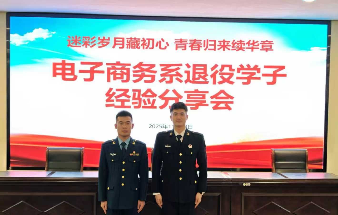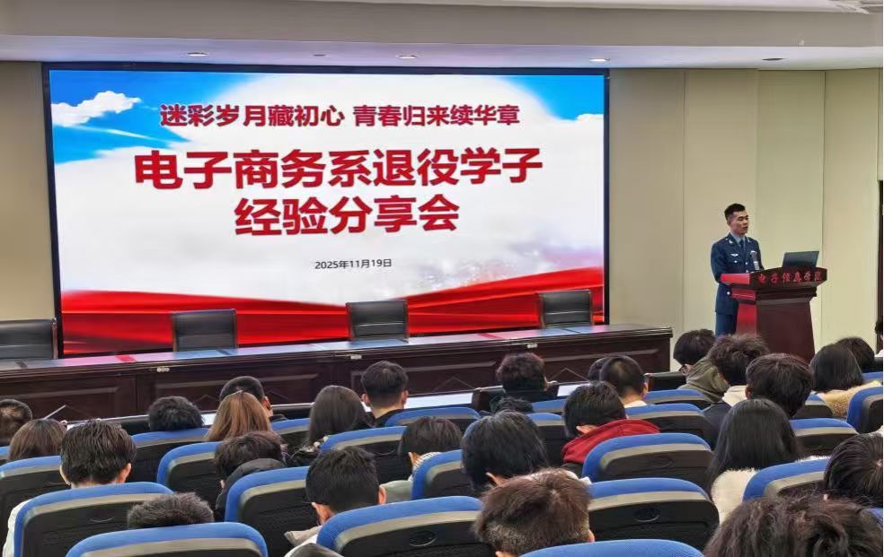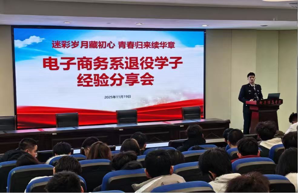 为激发青年学子参军报国的热血热情,助力学生明晰学业与人生规划的前行路径,11月19日,电子商务系精心策划并举办“迷彩岁月藏初心 青春归来续华章”退役学子经验分享会。活动邀请两位退役学子结合自身经历,为现场同学呈现了一场兼具热血力量与实用干货的精神盛宴。