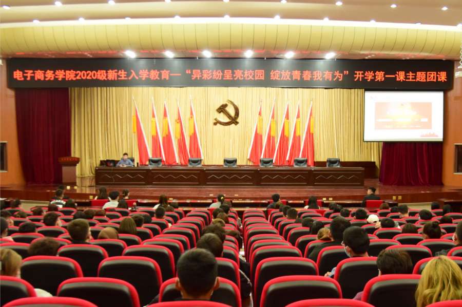 当代的新时代青年要不惧风雨,勇挑重担,坚定理想信念站稳人民立场,练就过硬本领投身强国伟业,让青春在党和人民最需要的地方绽放绚丽之花!为进一步培养青年学生的社会主义核心价值观和家国情怀,可以全面发展和完善自己。我院于10月11日下午三时举办的新生入学教育“异彩纷呈亮校园 绽放青春我有为”开学第一课主题团课在我校行政楼一号报告厅顺利进行,本次团课由电子商务学院团总支书记任益老师主讲,全体2020级新生参加。