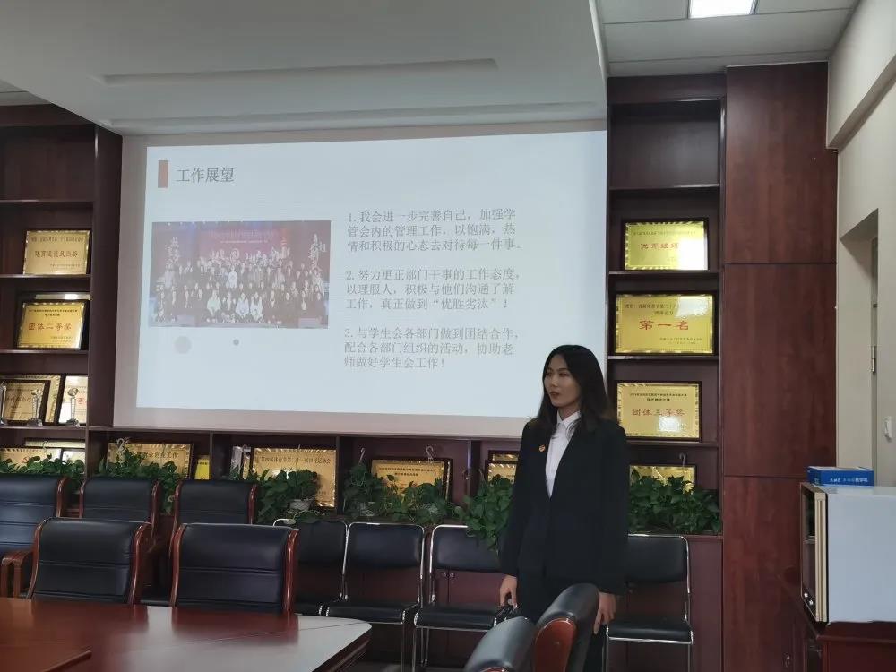 学生会是学校党委领导下、团委指导下的主要学生组织,是学校联系广大学生的桥梁和纽带。为深入贯彻习近平新时代中国特色社会主义思想特别是习近平总书记关于青年工作的重要思想,全面学习贯彻习近平总书记关于青少年和共青团工作重要指示精神,进一步深化电子商务学院团总支学生会与学生管理委员会的改革,支持和引导学生骨干队伍更好地服务青年学生成长成才。我院于10月27日中午十二点三十分在E座306会议室举行换届大会。由团总支书记任益老师和学生科科长苏雅老师主持,各部门现任部长、主席担任评委。