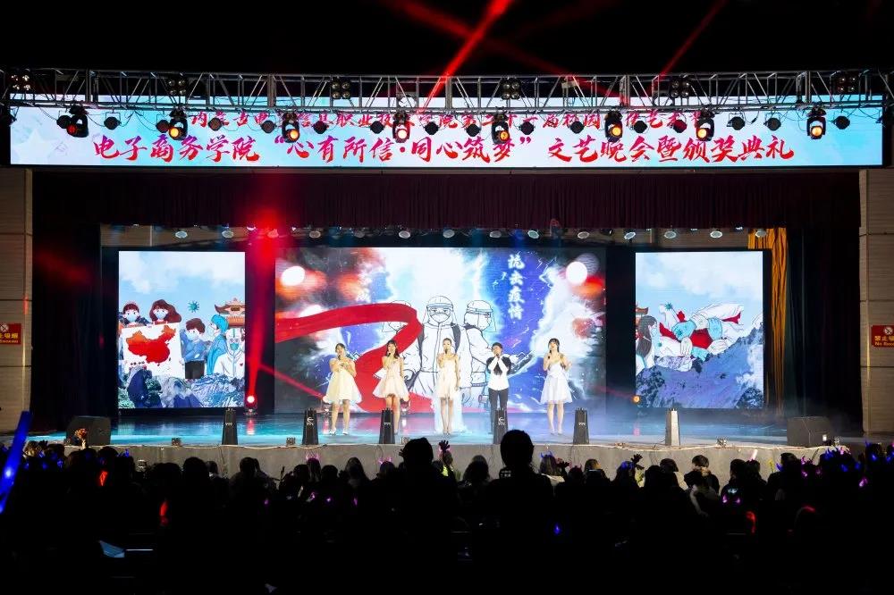 为加强思想道德建设,提高学生思想觉悟、道德水准、文明素养,广泛开展理想信念教育,深化中国特色社会主义和中国梦直传教育,弘扬民族精神和时代精神,加强爱国主义、集体主义、社会主义教育,引导学生树立正确的历史观、民族观、国家观、文化观。同时活跃校园文化氛围,丰富我院学生的课余文化生活,展现我院青年学子的青春活力,增强团支部凝聚力,鼓舞抗疫士气,使广大新生以更积极健康的精神面貌迎接崭新的大学生活,为青年学生健康成才营造良好的文化氛围,我院在文体二楼成功举办了第二十一届校园文化艺术节电子商务学院“心有所信 同心筑梦”文艺晚会暨颁奖典礼。
