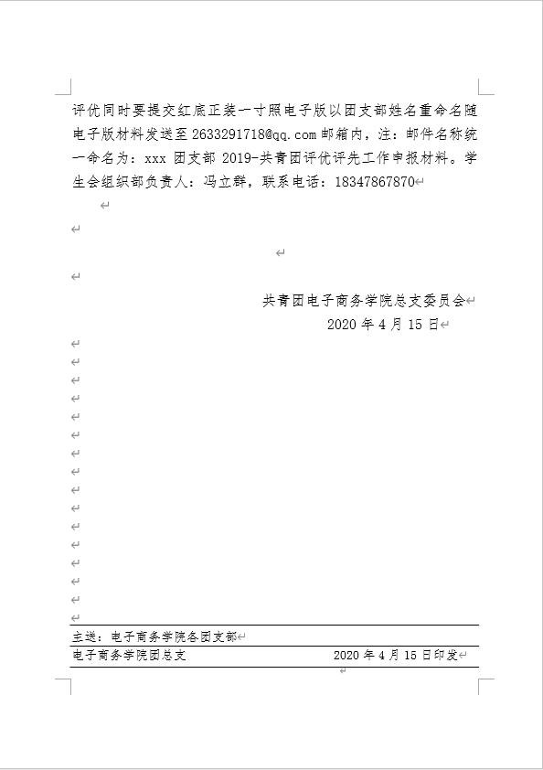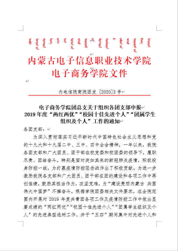 上一条: 关于举办电子商务学院第五届“异彩纷呈亮校园 绽放青春我有为”广场舞大赛的通知 下一条: 关于认真做好电子商务学院2019-2020学年第2学期 “推优入党”工作的通知