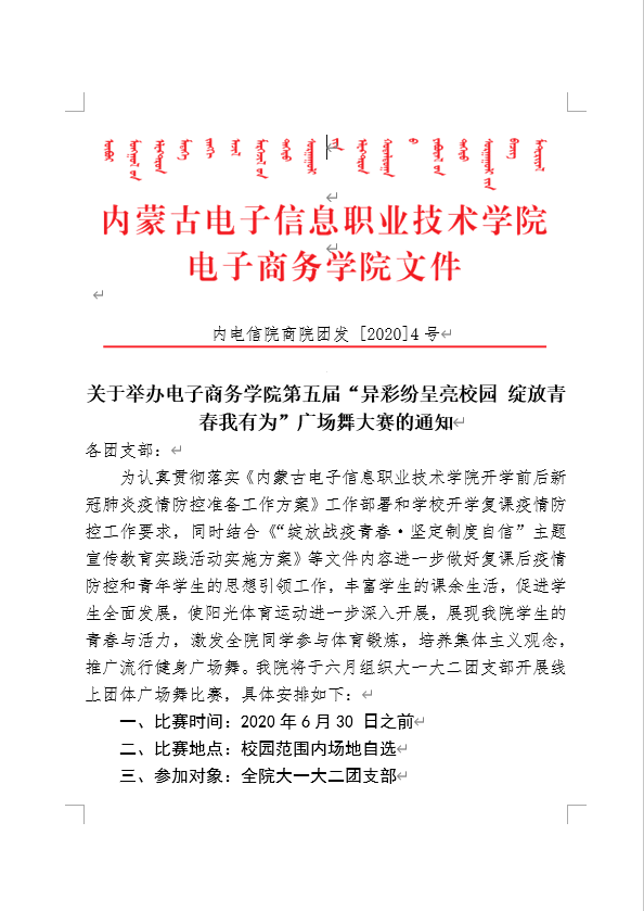 上一条: 关于选聘电子商务学院2020级 新生团支部班级助理的通知 下一条: 电子商务学院团总支关于组织各团支部申报 2019年度“两红两优”“校园十佳先进个人”“团属学生组织及个人”工作的通知