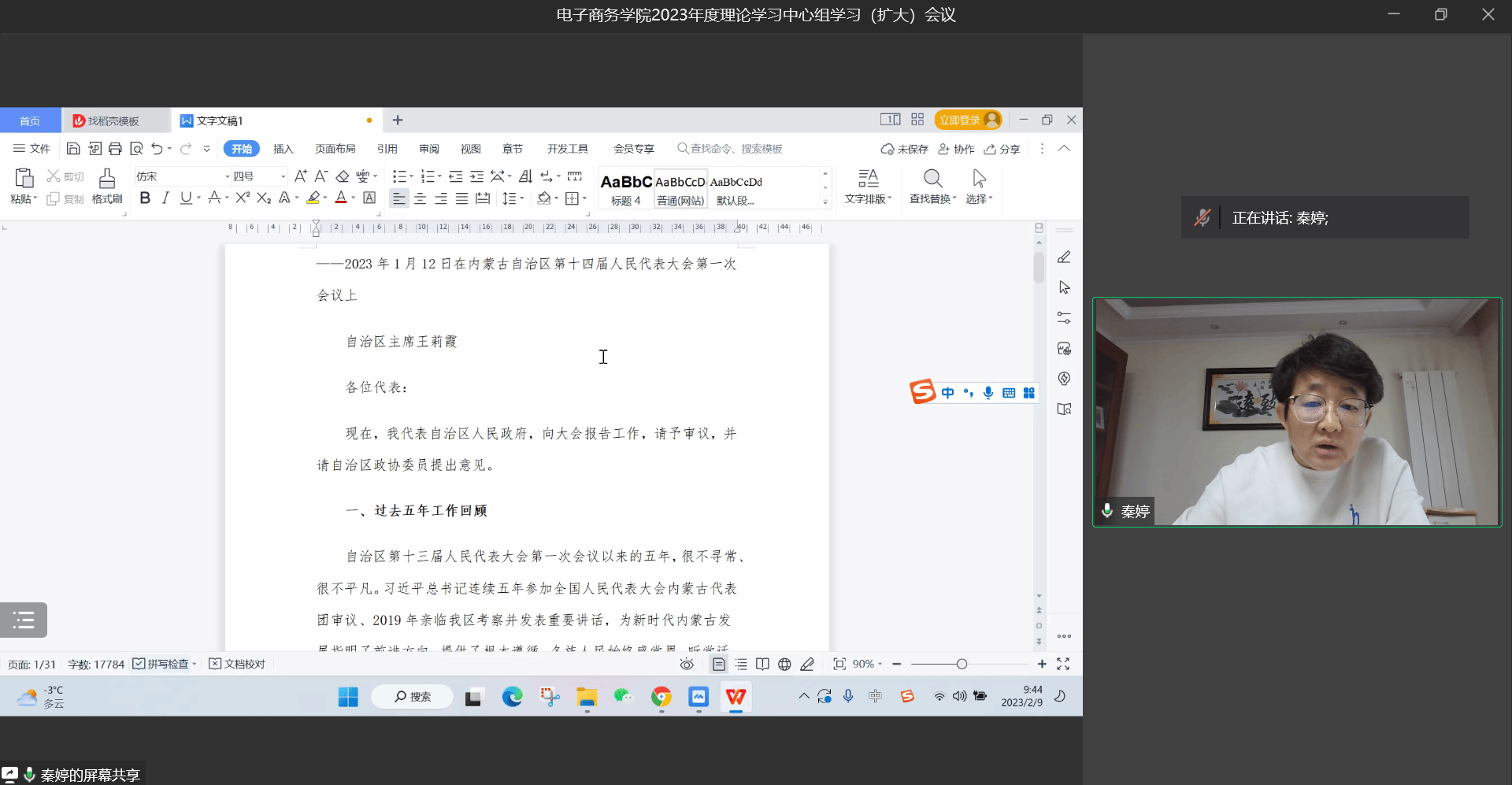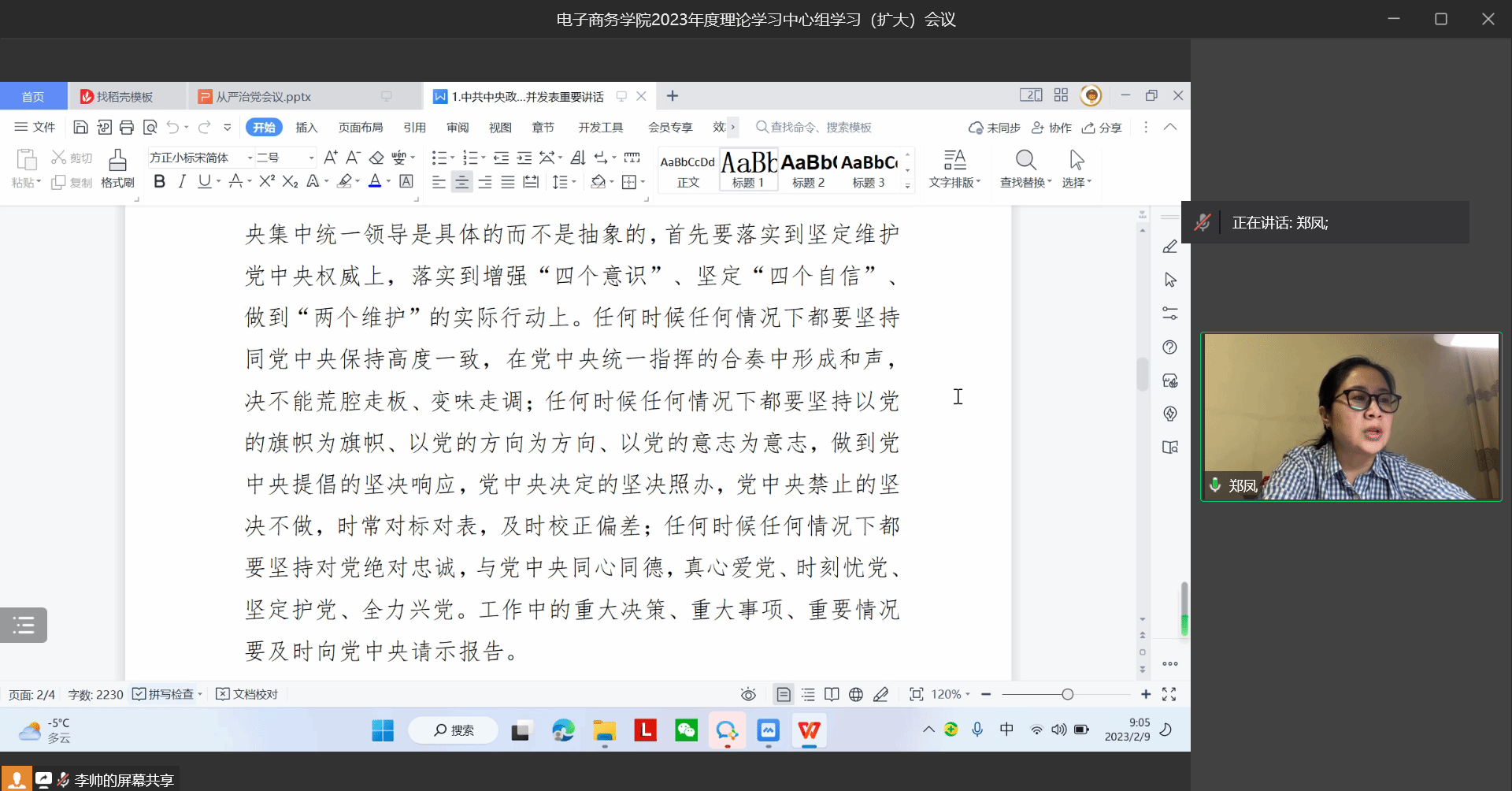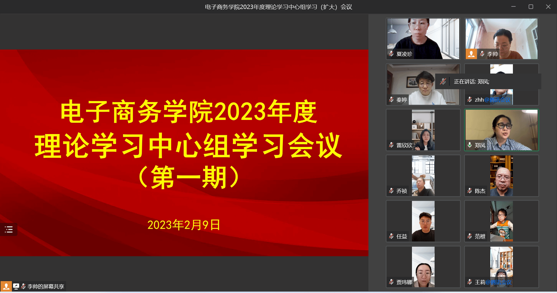 2月9日上午,电子商务学院召开2023年度理论学习中心组学习(扩大)会议。学校党委委员、副校长秦婷出席会议,学院全体科级以上干部参加。会议由党总支书记郑凤主持。