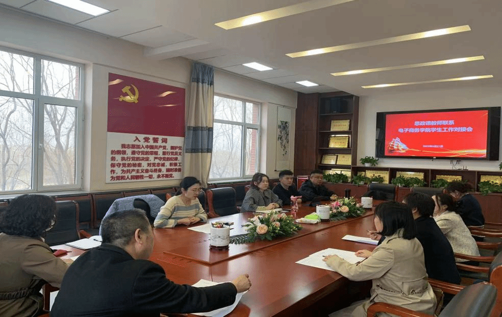 3月21日,电子商务学院召开思政课教师联系学生工作对接会。思政课教师王静、华艳玲、陶东武及电子商务学院各系各科室科长参加会议。会议由党总支副书记雷欣欣主持。