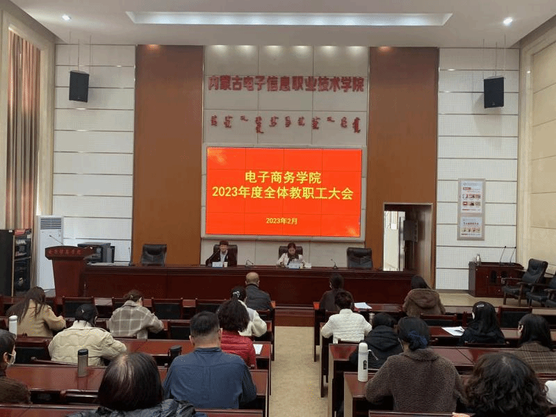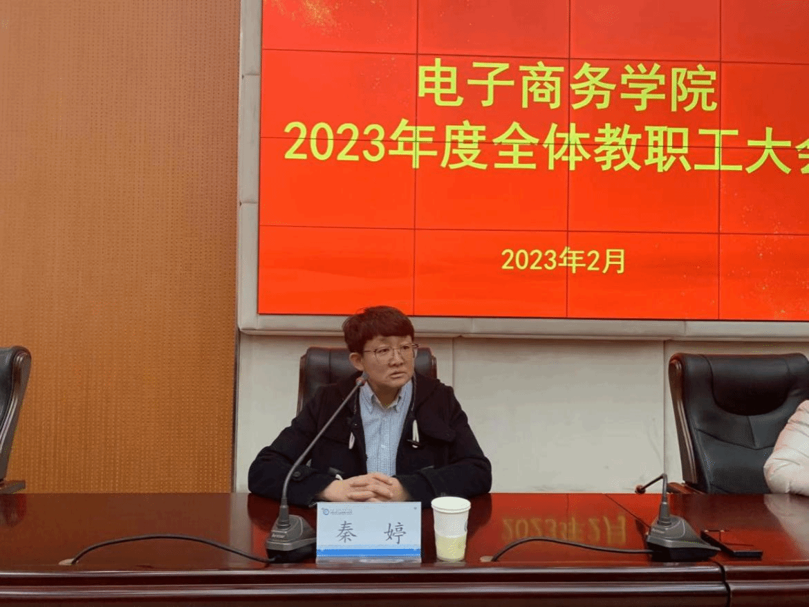 为进一步贯彻落实学校党委会会议精神,确保新学期各项工作顺利开展,2月28日下午,电子商务学院在行政楼二号报告厅召开2023年度教职工大会。学校党委委员、副校长秦婷到会指导。全体教职工参加会议。会议由学院党总支书记郑凤主持。