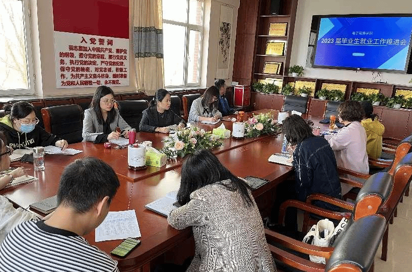 4月14日上午,电子商务学院召开2023届毕业生就业工作推进会。党总支书记郑凤及班子成员、各系系主任、辅导员、毕业班班主任参加会议。会议由副院长王莉主持。