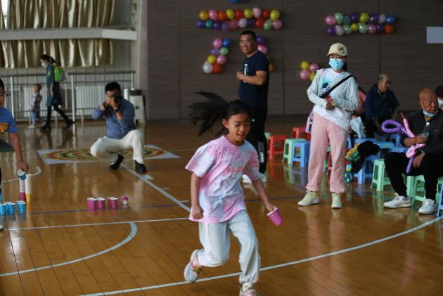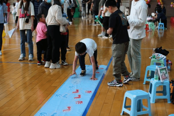 活动现场设有涂鸦区、食品加油站,同时根据教职工子女年龄特点安排了0-2岁、3-6岁、7-10岁、11-14岁四个活动区域,分别进行蒙眼吃香蕉、我是小小领路人、垒高楼、汉诺塔搭建等十二个适合孩子们的游戏项目。活动中,小朋友们和家长配合默契,齐心协力地完成一个又一个“花式”挑战。活动过程中穿插有小丑魔术表演及广场舞表演等环节,一次次将活动推向高潮。现场充满喝彩声和欢呼声,校园成为一片欢乐的海洋。
