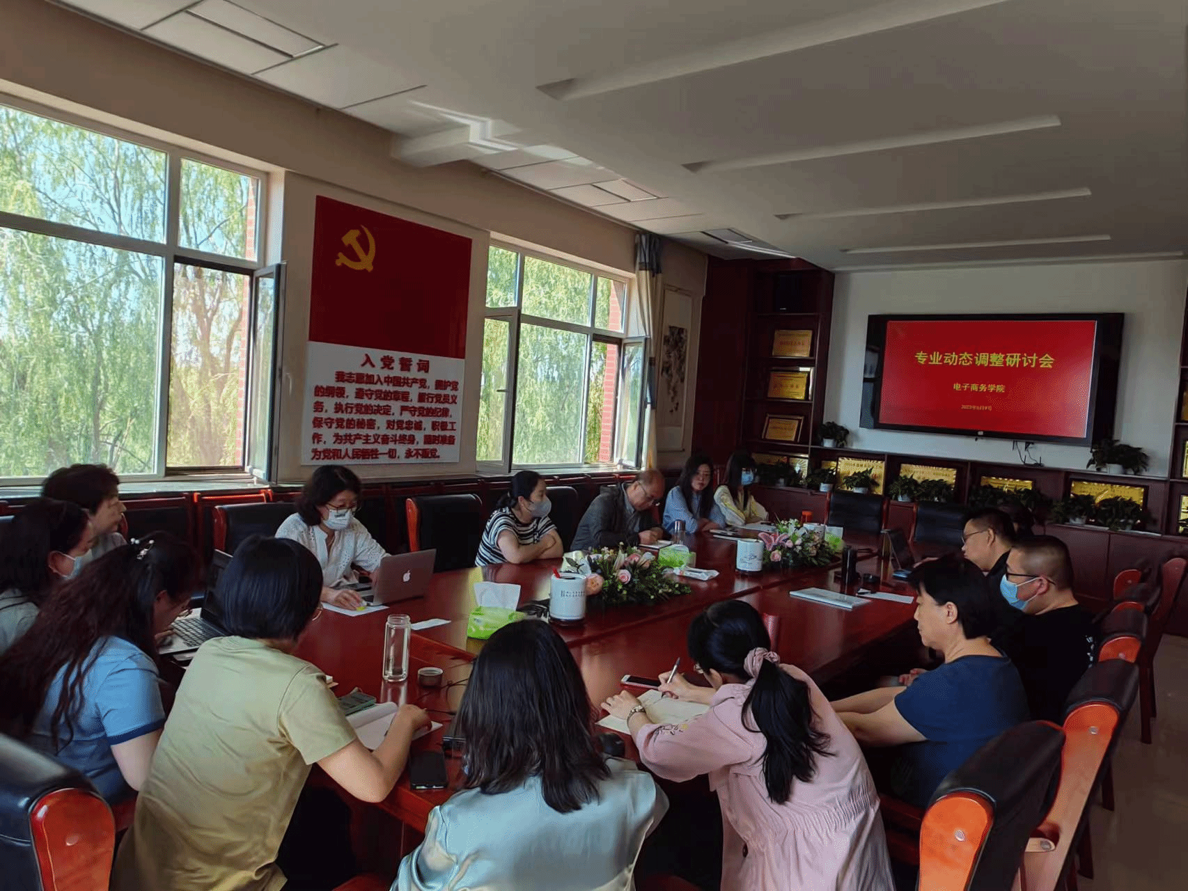 为深入开展学习贯彻习近平新时代中国特色社会主义思想主题教育,优化调整专业布局,推动专业建设内涵式发展,6月9日上午,电子商务学院在E306会议室召开专业动态调整研讨会,学院领导班子成员、各系主任、专业负责人、高职称高学历教师共计16人参加了会议,会议由教学副院长陈杰主持。