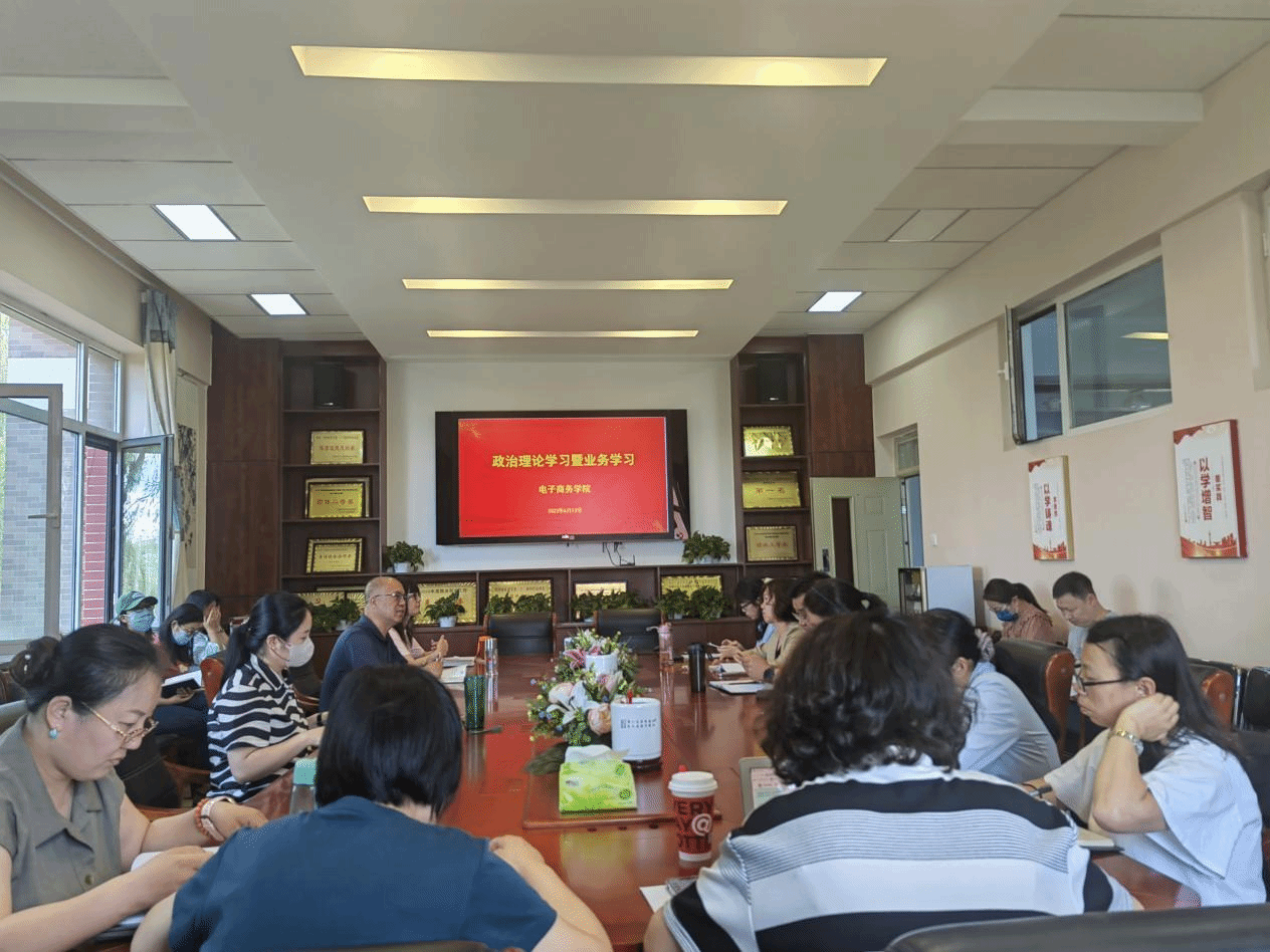 为深入学习贯彻习近平新时代中国特色社会主义思想主题教育,全面加强教师思想政治建设,6月13日下午,电子商务学院在E306会议室组织全体教师召开政治理论学习会,学习由党总支书记郑凤主持。