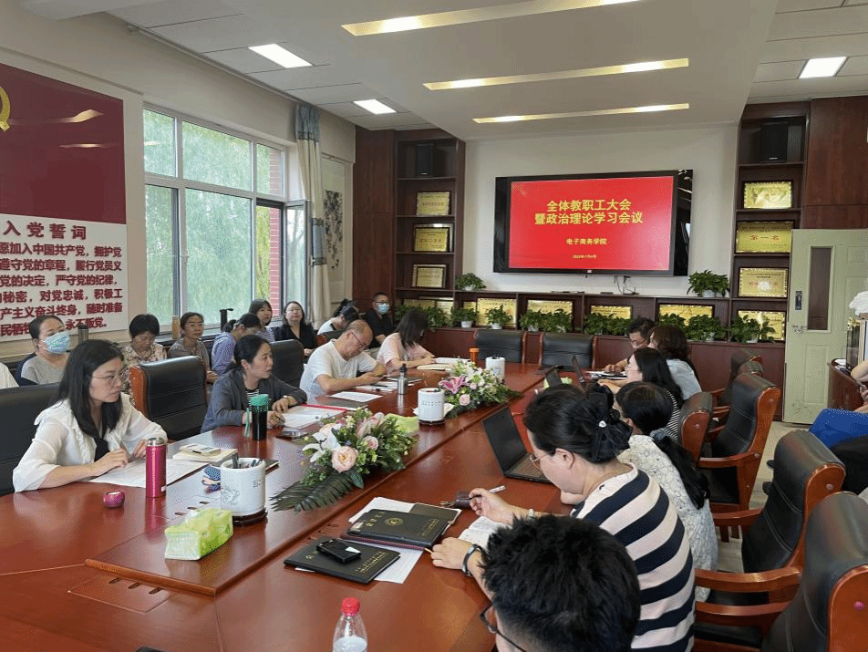 7月4日下午,电子商务学院在E306会议室召开全体教职工大会暨政治理论学习会议,深入推进学习贯彻习近平新时代中国特色社会主义主题教育,回顾总结本学期工作并部署暑期工作。会议由党总支书记郑凤主持。