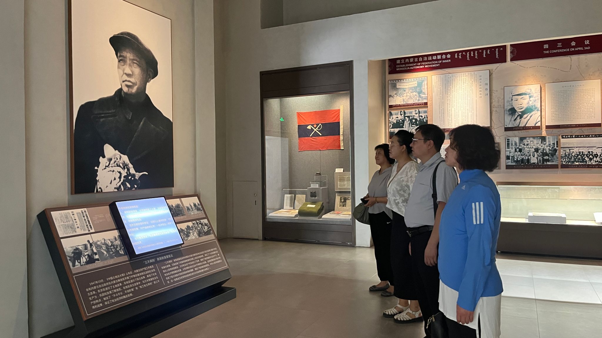 乌兰夫纪念馆整个展示内容共分为“追求真理 投身革命”、“播洒火种 再展红旗”、“团结奋斗 坚持抗战”、“实践自治 功垂千秋”、“团结建设 振兴边疆”、“为国操劳 鞠躬尽瘁”六大部分。纪念馆借助文物、影像、油画、雕塑等手段充分还原历史,既以乌兰夫的生平事迹为主体,又体现内蒙古老一代领导群体的业绩。支部党员教师不时停下脚步仔细观看,认真听取讲解。