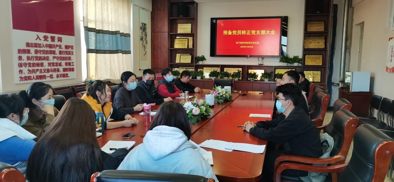 12月22日,电子商务学院学生党支部召开预备党员转正大会,对王明哲预备党员转正问题进行讨论和表决。大会由党总支副书记、学生党支部书记雷欣欣主持,学生支部全体教师、两名入党介绍人及王明哲参加会议。