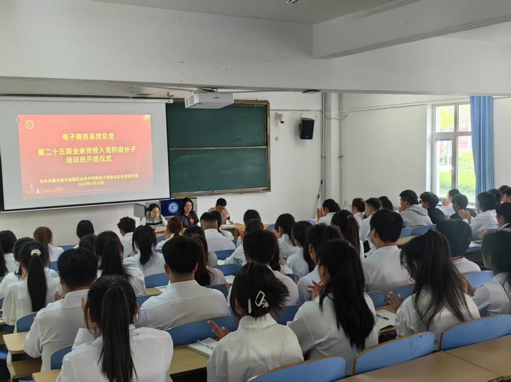 为进一步加强入党积极分子队伍建设,提升入党积极分子政治素养,5月20日下午,电子商务系党总支第二十五期业余党校入党积极分子培训班正式开班。此次培训班旨在深化学员们对党的认识,提高政治素养,为党的事业培养更多优秀的后备力量。电子商务系学生党支部委员及本期业余党校全体培训学员参加了开班仪式。