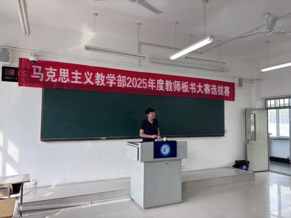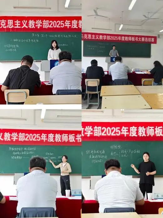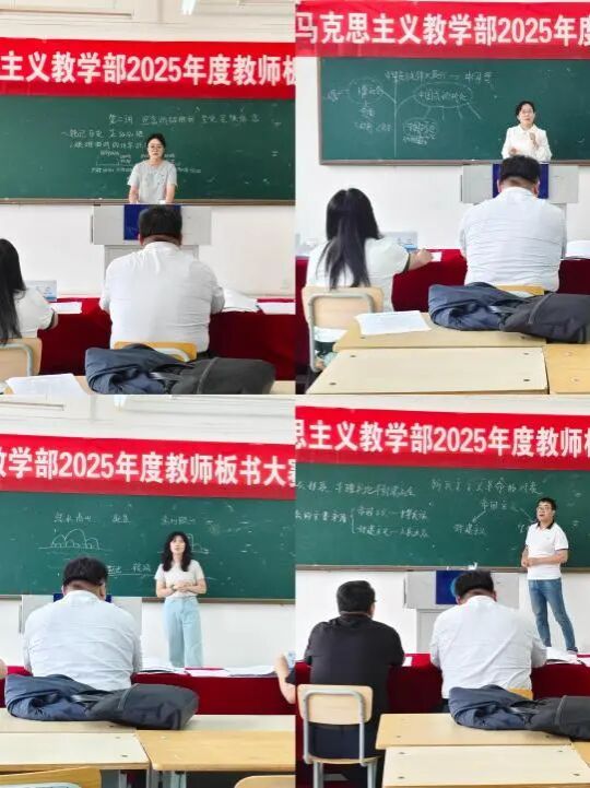 9月2日,马克思主义教学部在教学楼D302教室举办了2025年度教师板书大赛。本次大赛聚焦思政课教学核心能力提升,旨在通过以赛促学、以赛促练,进一步规范教师板书书写标准、提升板书设计水平,夯实教师教学基本功,充分展现思政课教师的专业素养与教学风采,为思政课堂提质增效注入新动能。