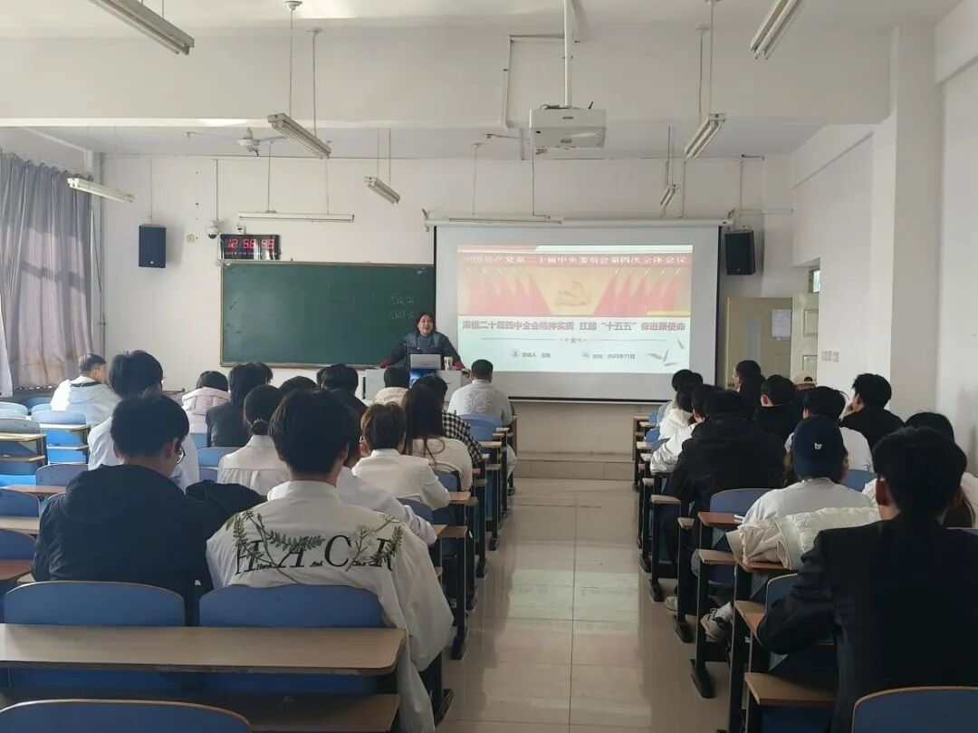 为深入学习贯彻党的二十届四中全会精神,引导入党积极分子深刻领会“十五五”规划核心要义,切实强化新时代青年责任担当,11月11日,电子与自动化系党总支分党校组织开展“深悟二十届四中全会精神实质 扛起‘十五五’奋进新使命”专题讲座。马克思主义教学部选派吕敏老师进行专题授课。