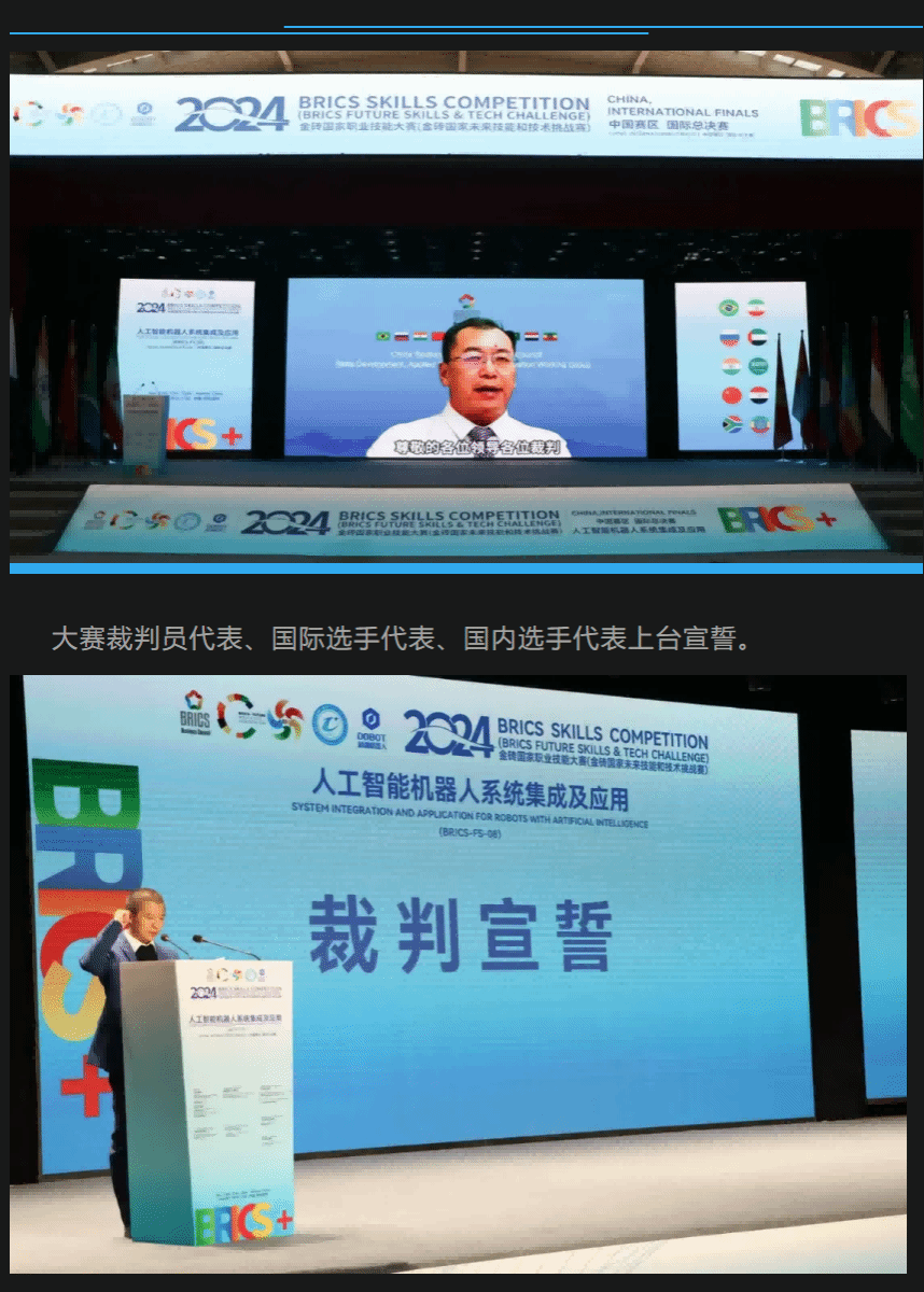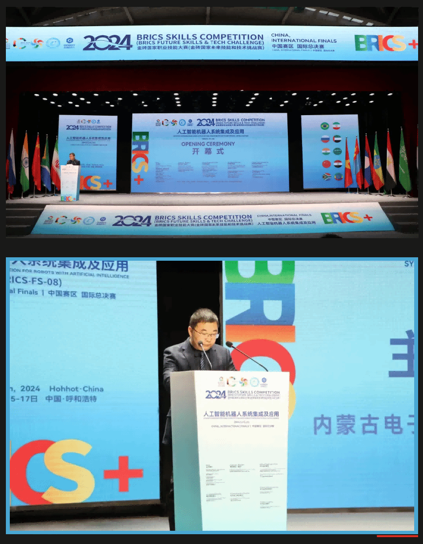 2024金砖国家职业技能大赛人工智能机器人系统集成及应用赛项的国际总决赛国内外各参赛队于11月15日上午陆续报到,11月15日下午大赛开幕式在内蒙古电子信息职业技术学院隆重举行。