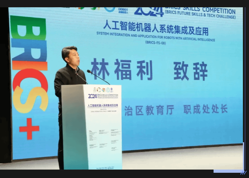 林福利在致辞中强调,要以举办此次大赛为契机,结合实际推进现代职业教育体系建设改革,不断增强职业教育适应性和贡献度。进一步搭建起各院校、各企业之间交流合作的平台,加强在产教融合、人才培养、人文交流等方面的合作,推动“大金砖合作”高质量发展。