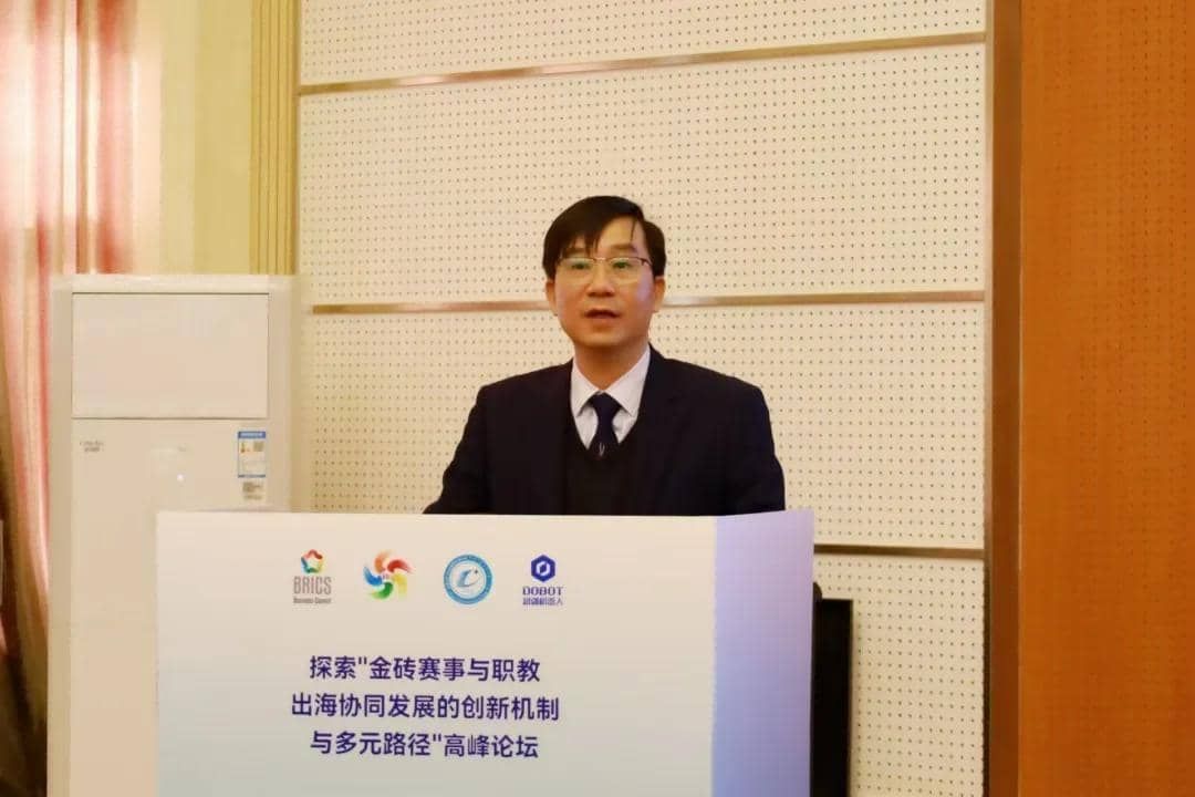 林民向参加论坛的专家、学者和参会师生致欢迎辞。他指出,各职业院校间要共同探讨金砖赛事与职教出海的协同发展之路,积极参与金砖国家职业教育交流与合作,共同构建职业教育命运共同体,为培养更多具有国际视野和竞争力的高素质技术技能型人才贡献力量,并祝愿本次高峰论坛圆满成功。