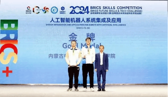 在这场高水平的国际赛事中,我校学子刘佳敏、满久琦两位同学以出色的表现脱颖而出。他们凭借着扎实的实操技术功底、对人工智能机器人系统集成及应用领域的深刻理解,以及出色的现场应变能力和团队协作能力,最终荣获该赛项的一等奖,同时获得了宝贵的金牌。