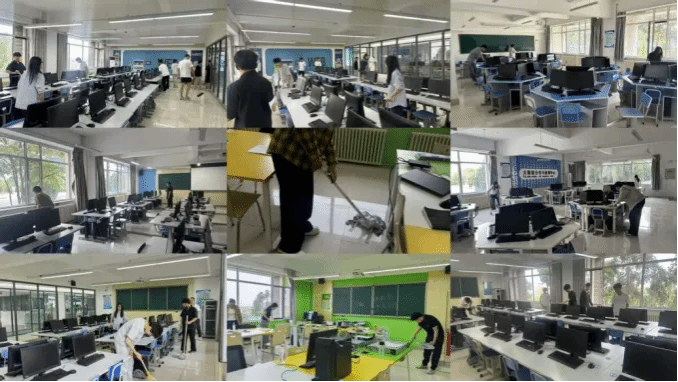 为弘扬劳动精神,践行新时代青年爱护公共环境的责任担当,营造整洁、安全、舒适的学习与实践环境,软件与大数据系于2025年5月29日下午6点在实训楼A座和D座开展青春我先行第四期志愿服务活动----走“净”机房志愿公益清扫。
