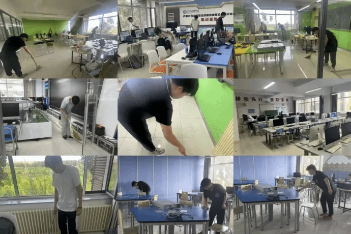 在活动中,志愿者们化身劳动先锋,迅速按小组分工展开行动。有的挥动扫把清扫地面的灰尘和杂物,有的则用拖把仔细拖洗地板。擦洗桌椅的志愿者用抹布去除表面的浮尘,随后仔细擦拭桌面和键盘的缝隙,最终将桌椅摆放得井井有条。另外,还有志愿者负责清理窗台,整理散乱的电源线,他们将电线仔细捆扎,使得机房的环境更加整洁有序。经过细致的打扫,机房地面干净了,桌椅摆放整齐,设备表面没有了灰尘,整体环境清爽了许多。这次活动让志愿者们动手参与劳动,不仅改善了学习环境,也让大家体会到保持公共卫生的重要性。