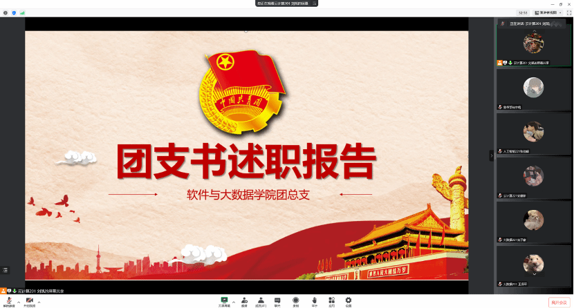 为进一步加强团支书队伍建设,提高各支部团支书的责任意识、服务意识、大局意识和奉献意识,支持和引导团支书更好地服务青年学生成长成才,推动团支书的工作进一步科学化、规范化。2022年12月23日,软件与大数据学院团总支开展了团支书述职评议大会,软件与大数据学院党总支副书记张志海,团总支书记郭凯琪,团总支辅导员雷厉霆,团总支辅导员周翔四位老师出席本次会议,20、21、22级全体团支书参加。