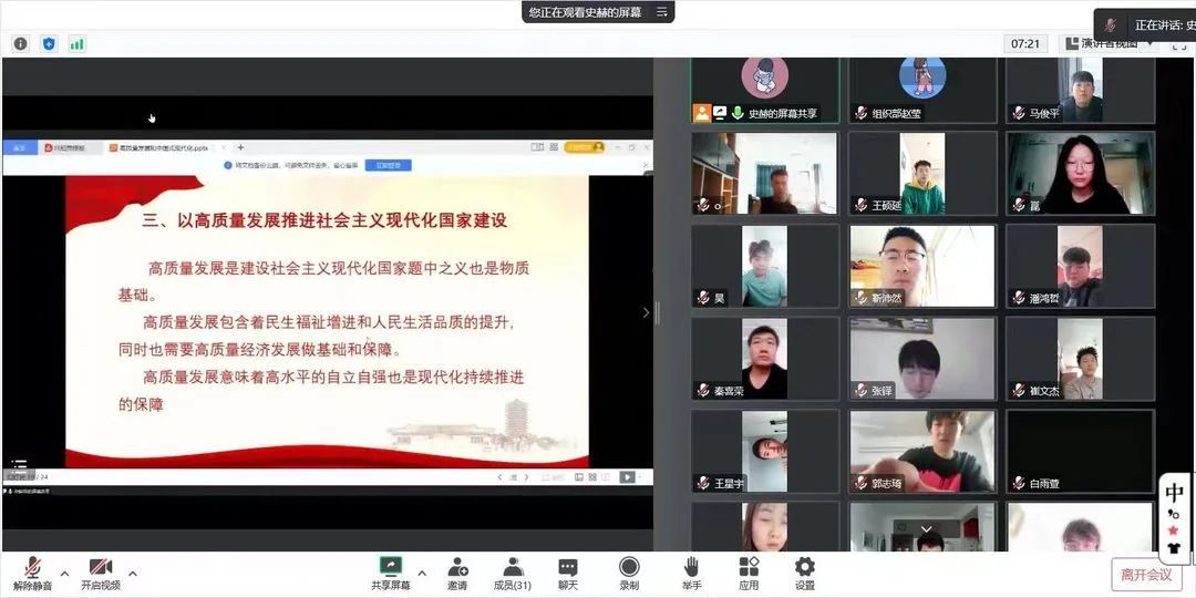 通过此次线上研讨会,同学们纷纷表示,作为新时代的青年,在活动结束后要学习贯彻落实党的二十大精神,深刻体悟党的二十大精神所蕴含的思想伟力,从中汲取奋进力量,在学习时一定会将其落实到实践中,不断提高判断力、领悟力,踔厉奋发,勇毅前行,志存高远,不懈奋斗。