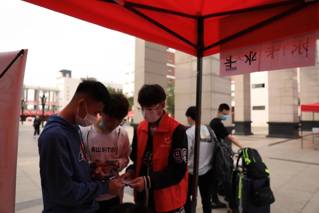 带领新生完成刷卡报到,带领新生领取行李,为新生答疑解惑,以便更快地适应大学生活,让他们尽快走入新的集体、感受新家庭的温暖。