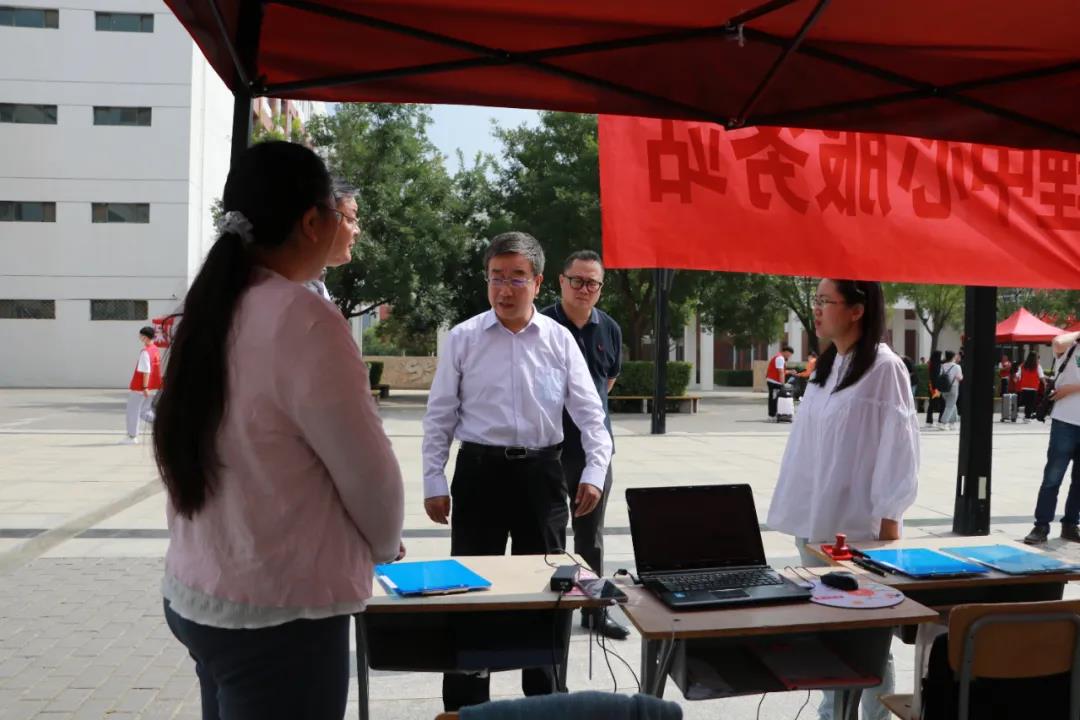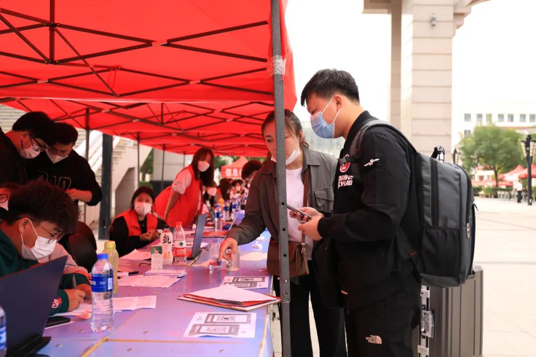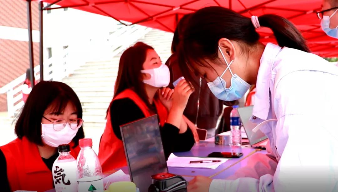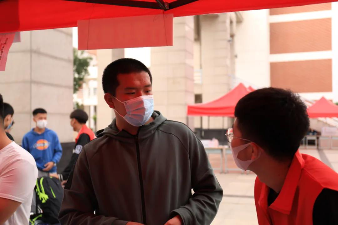 在欢迎你们到来的同时,疫情防控也不容马虎。校门口设立各院独立检测通道。顺着图书馆的指引线,志愿者们一丝不苟的测量着体温。右侧设立临时观察点,对学生安全进行双重保障。