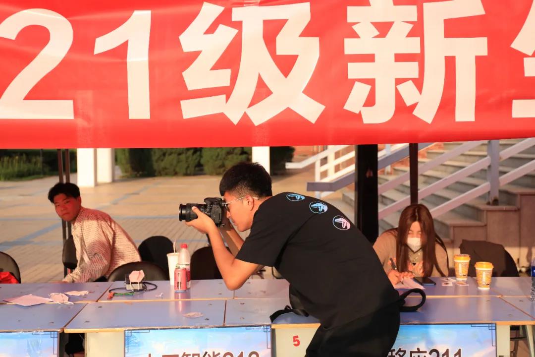 走在路上,有拿着摄影机的同学,行色匆匆地奔走于两处迎新点。他们就是辛勤的幕后工作者,他们用摄影机记录着每一张崭新的面孔,记录萌新们的喜悦与期待,也拍下了志愿者们热情付出、尽职尽责的画面。
