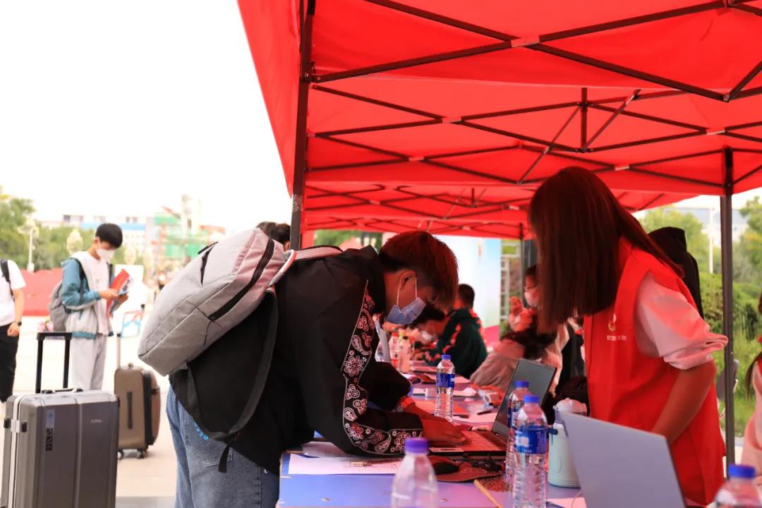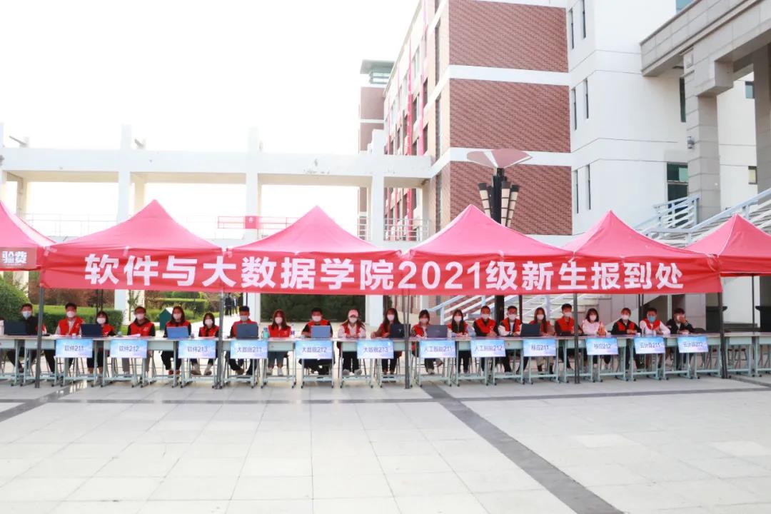 软件与大数据学院的志愿者们分工明确,不停地穿梭在校园里,有条不紊地迎接新同学,为他们耐心讲解入学手续办理细节以及安全须知,引导他们查看分班情况、宿舍分布,并指引新生到各自班主任处登记相关信息。