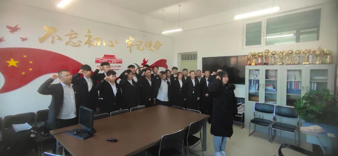 仪式上,学生党支部书记李茜雯老师带领20名预备党员在党旗下进行了庄严的宣誓——“我志愿加入中国共产党,拥护党的纲领,遵守党的章程,履行党员义务,执行党的决定,严守党的纪律,保守党的秘密,对党忠诚,积极工作,为共产主义奋斗终身,随时准备为党和人民牺牲一切,永不叛党!”面对庄严的党旗,大家庄重地举起右拳,说出了他们的铮铮誓言,短短八十字的誓词是他们对党的第一个承诺。