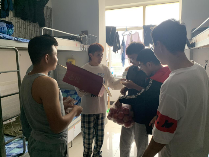 前来领取福利的班长都在楼道内自觉排队,发放现场紧张而有序。领取福利后,各班班长将节日礼物发放到了每个同学们的手中。此次活动送出的不仅仅是中秋礼物,还包含学校对学子们美好真挚的祝愿。