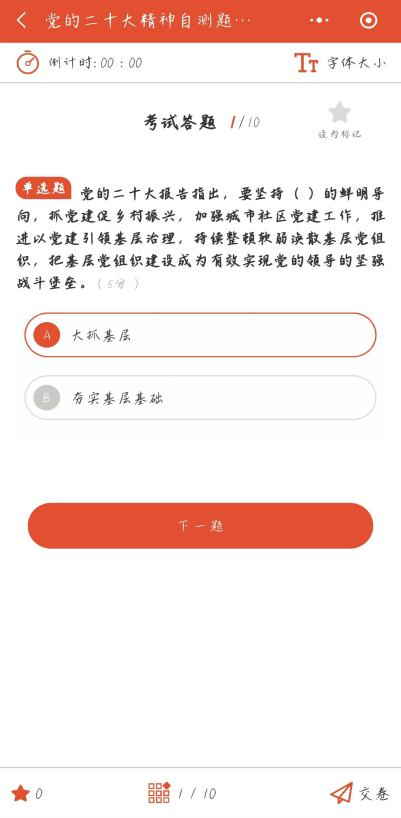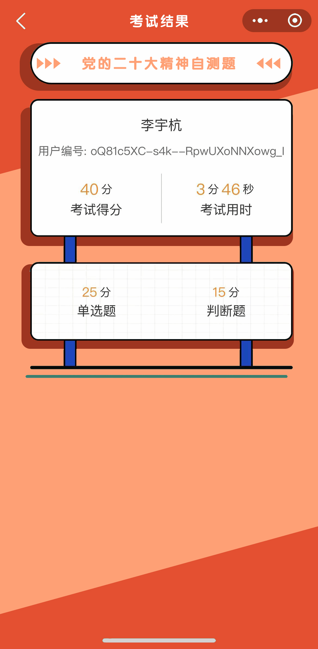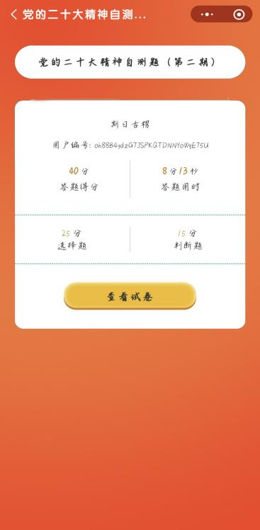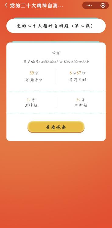 为了学习党的二十大精神,引导党员与团员一同体会党的思想理论并了解党的二十大精神,软件与大数据学院开展“学习党的二十大精神”自测活动。