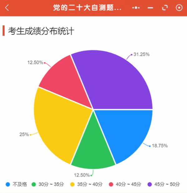 本次活动旨在进一步激发党团干部的学习热情,学习党的二十大精神,提升对党的二十大精神掌握水平。希望本次活动推动大家把二十大精神学习成果落实到实际行动上,以踔厉奋发的姿态建功新时代,奋进新征程,建功新时代!一起来看看,本期“学习党的二十大精神”自测活动成绩分布与满分党员、团员。