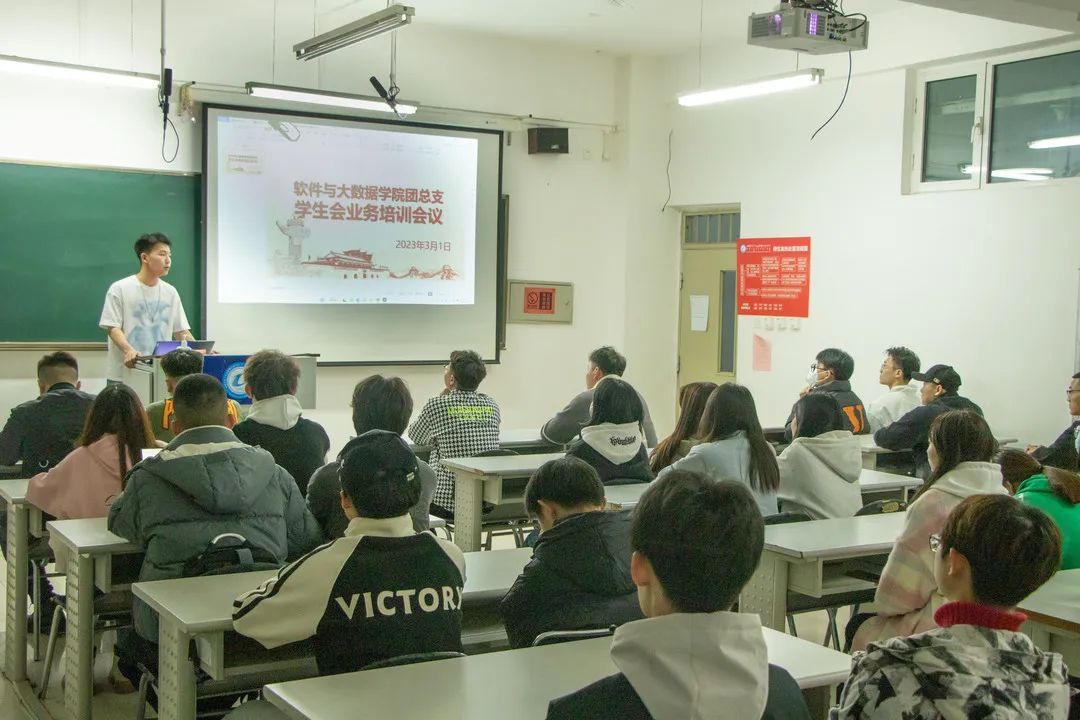 为落实学生工作会议精神,研究部署新学期学生会日常工作。加强学生会内部队伍建设,进一步提高我院学生干部的政治素养和工作能力,充分发挥先锋模范带头作用。软件与大数据学院团总支于2023年3月1日晚在教学楼A108召开2023年春季学生会内部培训会暨《开学第一课》学习活动,软件与大数据学院团总支学生会全体学生干部参加本次会议。