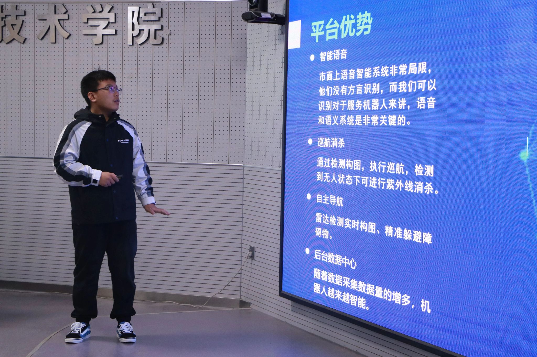 比赛阶段,各项目团队从项目背景、市场痛点、技术创新、商业模式、团队构成、未来展望等方面进行汇报。答辩环节,团队成员分工协作,对评委们提出的专业问题进行针对性回答。评委老师根据各个项目特点,指出项目目前存在的不足,与参赛选手进行深入细致地探讨,提出可行性修改意见。