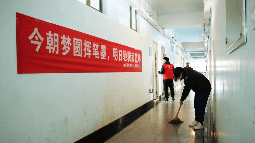 此次活动为期三天,共招募志愿者六十余人。志愿者们手拿抹布、扫把、簸箕和拖布。从黑板到讲台,从书桌到窗台,从教室到楼道,从楼内到室外,打扫得干干净净,一尘不染,不留一点卫生死角。活动最后,以抽奖的形式来为志愿者们颁发奖品并合影留念。