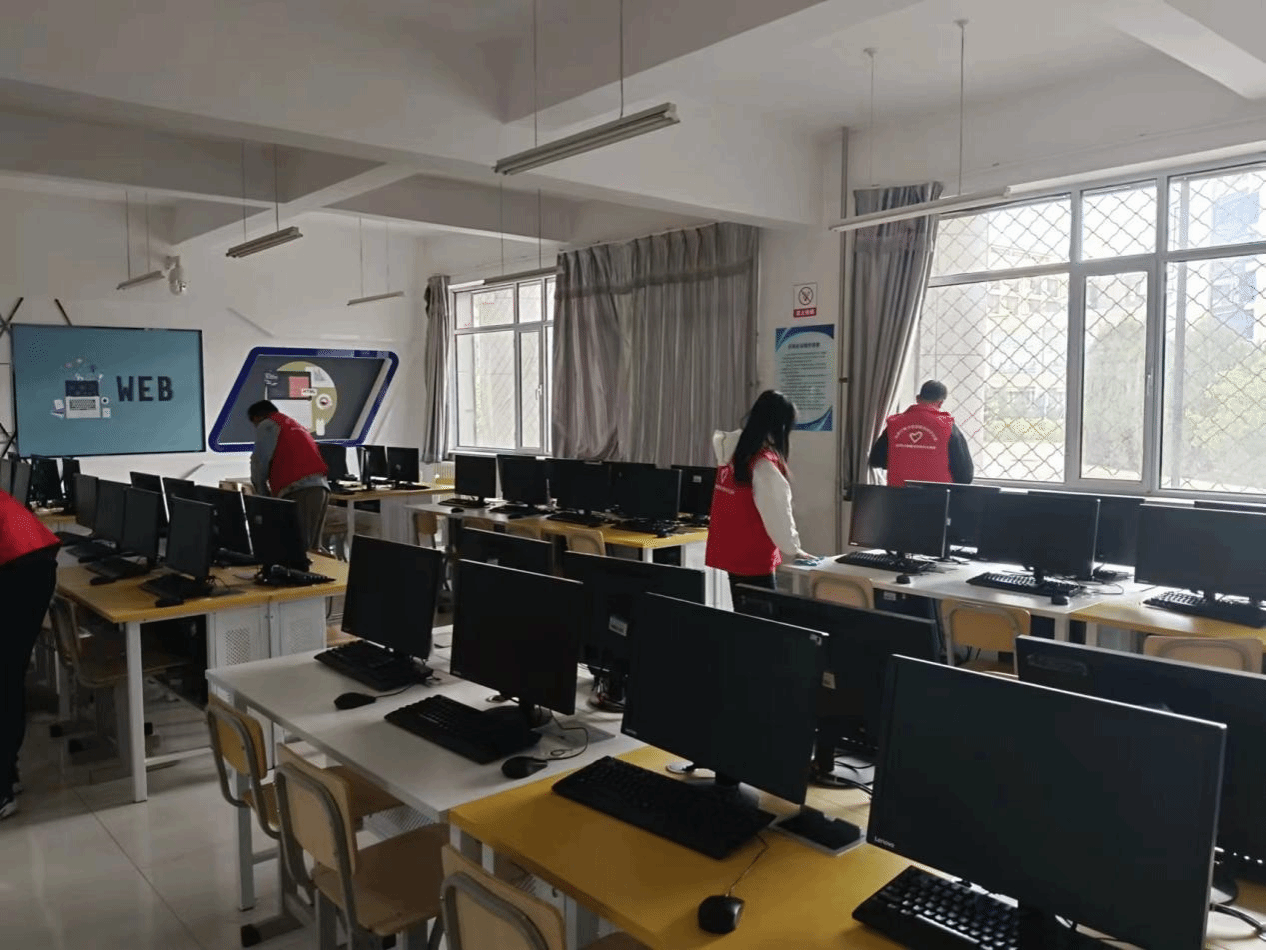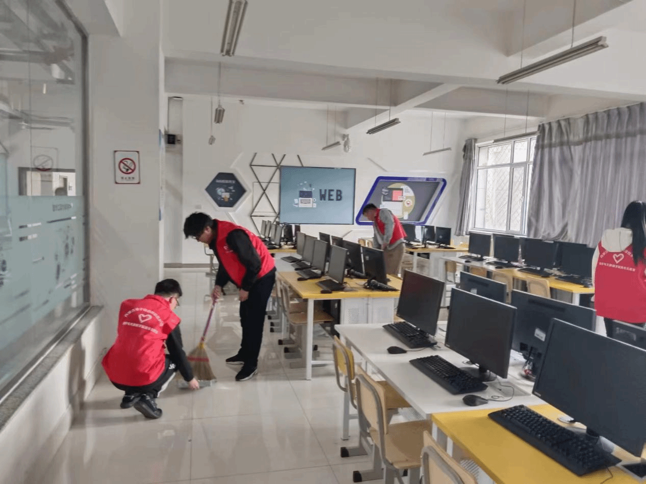 为进一步营造文明整洁的课堂环境,提升任课教师的教学质量和学生的学习环境,展现学生爱护公物、崇尚劳动的优良品质。软件与大数据学院团总支于2023年5月12日下午在实训楼A座和D座开展走“净”机房清扫活动,本次活动共有100余名志愿者参与。