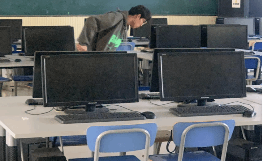 本次活动开始,在负责人为志愿者们分配好工作后,志愿者们迅速开始机房清扫工作。他们认真细致地清扫每一个角落,不放过任何一个卫生死角,将桌面和机房环境清理干净,并把键盘鼠标全部摆放整齐。打扫完毕后,整个机房焕然一新,志愿者们们用自己的实际行动为机房教室增添了一分清新,一抹明亮。