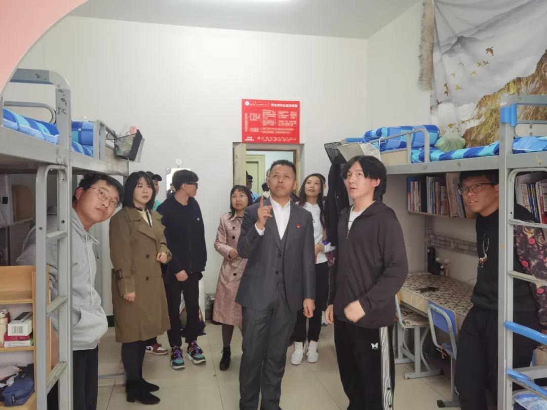 中午课后,李占岭一行在软件与大数据学院党总支副书记杨志敏、团总支书记李茜雯及辅导员郭凯琪的陪同下先后来到学校食堂和学生宿舍,与人工智能202班学生代表共同就餐,了解学生宿舍文化建设及宿舍卫生情况。走访调研中,李占岭广泛听取青年学生在学习生活等方面的建议和诉求,了解当前学校团学工作现状及学校重点工作落实情况。他勉励同学们要用积极心态面对学习和生活中的困境,与“驻校蹲班”老师保持长期联系,共同设计谋划推动班级各项工作,以主人翁的姿态为学校发展建言献策。