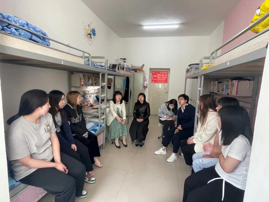 一行人先后前往男生3号公寓和女生6号公寓,与同学们进行了亲切深入的交流,详细询问了学生的学习和生活情况,了解学生的思想动态,解答了同学们有关学习方面的诸多问题,并听取了大家对日常管理服务的意见和建议,同时叮嘱同学们,要提升安全意识,注意用电安全、饮食安全和财产安全,养成良好的学习、卫生和文明习惯,保持青春活力的大学生形象,共同营造安全有序的宿舍文化环境。此次走访还特地去到少数民族学生宿舍,蒙古族同学们积极反映了生活和学习情况,整个谈话过程氛围融洽。她们说到:宿舍环境很温馨,大家现在已经很好地适应了校园生活,课堂上老师的讲解细致认真,即使是深奥的高数也能够学会,并表示之后会更加努力学习,取得更大的进步。