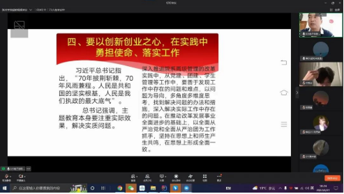之后,讲座从要以敬畏历史之心,在实践中升华初心、勇担使命,以史正人、以史化风;要以心系事业之心,在实践中升华初心、勇担使命;要以创新创业之心,在实践中勇担使命、落实工作三个方面详细展开讲解入党积极分子如何能更好向党组织靠拢。