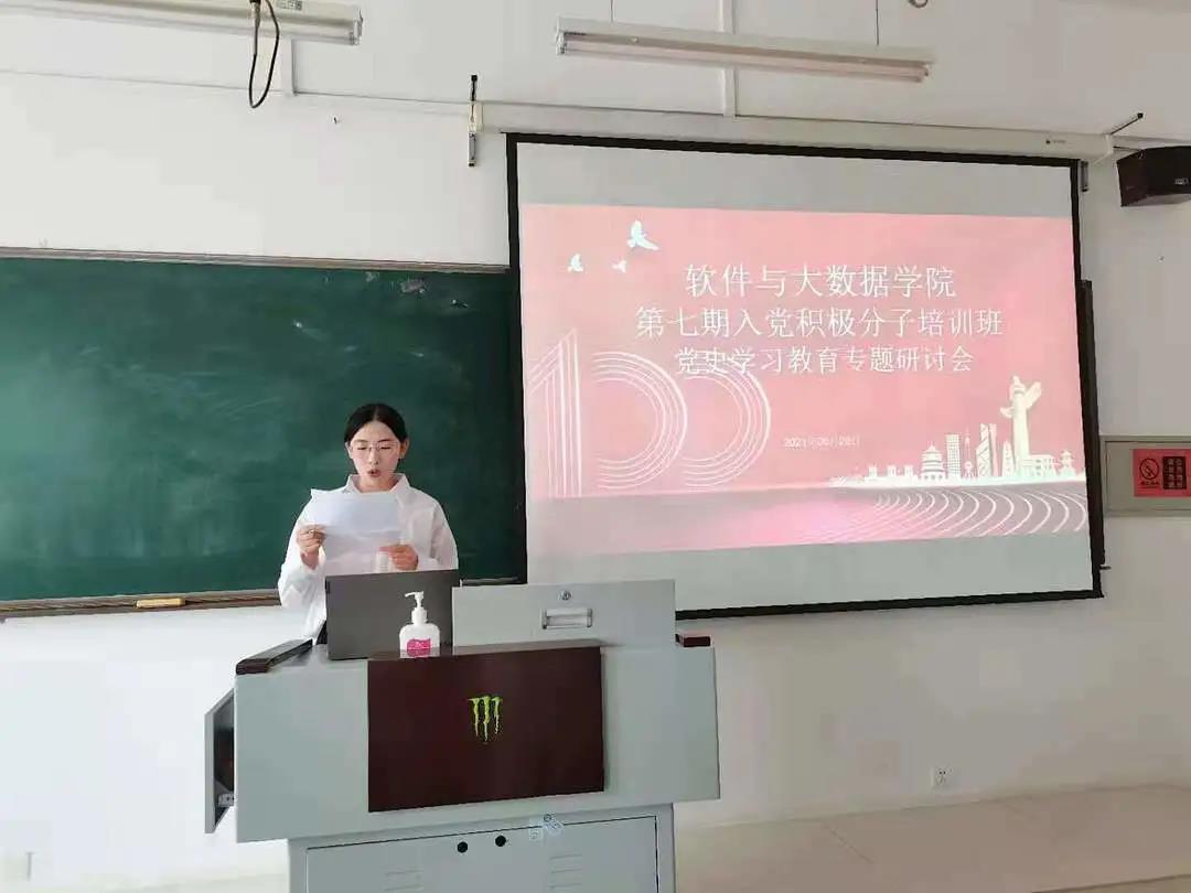 在建党一百年的特殊时刻,站在新的历史交汇点上重温党的光辉历史,影响深远、意义重大,为了进一步加强党的建设,强化入党积极分子党性教育,激励入党积极分子不忘初心、牢记使命,软件与大数据学院第七期入党积极分子培训班以党史学习教育为主题进行了一系列专题辅导学习。