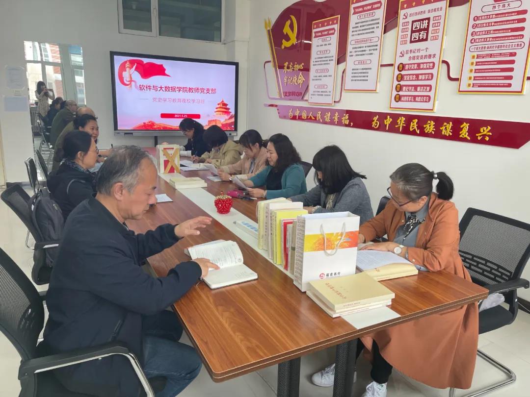 紧接着,各位党员教师纷纷发言。路颖同志说:以史为师,在党史学习中坚定理想信念;以史为鉴,在党史学习中砥砺初心和使命;以史为镜,在党史学习中勇于自我革命。斯日古楞同志说:党史学习让我对党的发展历史有了更清晰的认识,中国共产党的历史是一部丰富生动的教科书,全面学习党史是一次自我提升和洗礼的过程。赵彦同志说:学习了毛泽东同志提出的三大法宝—“统一战线、武装斗争、党的建设”受益颇深,并结合工作实际不断加强理论学习,坚持群众路线,注重学用结合。每位党员教师都表达了学习新民主主义革命史后,对党的政策理论认识更加深刻,也联系业务工作实际,将这些理论实践应用。今年是中国共产党建党100周年,软件与大数据学院教师党支部按照学校党委的统一安排部署,开展了一系列丰富多彩的党史教育活动。通过这些活动,全体党员受到了一次深刻的党史教育和精神洗礼。