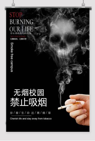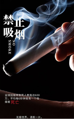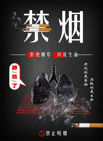 作品介绍:在这次海报设计中,个人认为利用图文合结更容易表现出烟草危害以及充分使青少年更深刻的认识到吸烟对自己以及他人的身体健康影响程度,从而体现出这次禁止吸烟公益海报的实际意义。