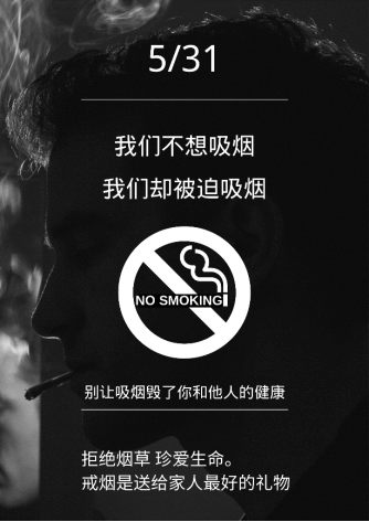 作品介绍:虽然我和舍友都不吸烟,但还是少不了被二手烟所“毒害”。二手烟就是我们说的被动吸烟,长期吸入,跟吸烟危害是相似的因此,我的海报主题侧重于二手烟方面展开制作编辑。