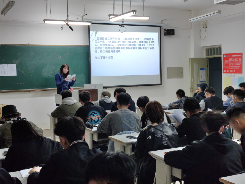 为确保我院2020-2021学年第一学期综合素质测评与校级优秀学生奖学金评定工作顺利开展,3月11日晚,辅导员张维娜老师组织测评班级班长和学习委员在A308室召开培训会。