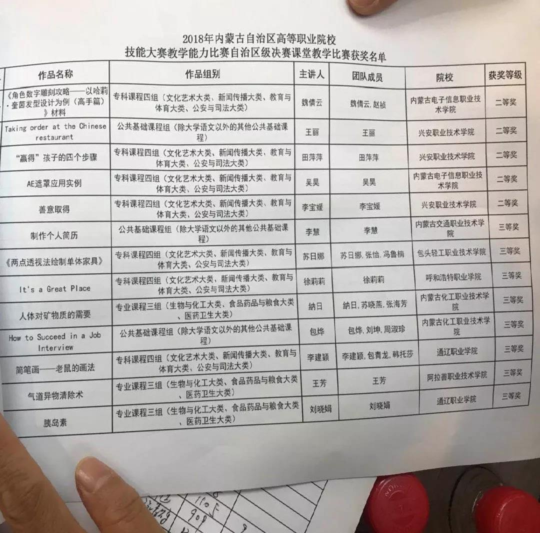2018年内蒙古自治区高等职业学院技能大赛教学能力比赛自治区级决赛课堂教学比赛获奖名单